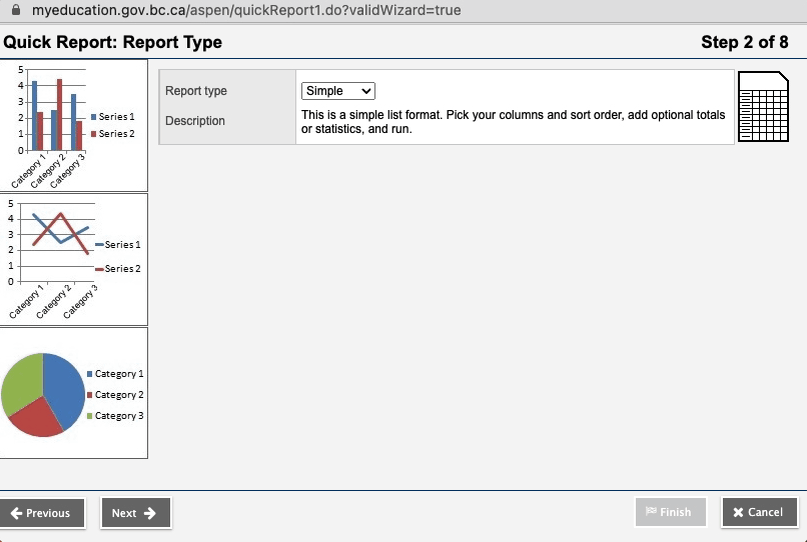 - On the next page, labelled Quick Report: Report Type (Step 2 of 8):